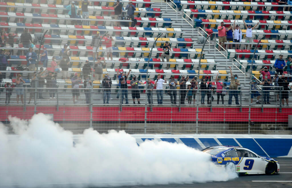 His car didn’t roll down the front stretch while he was standing on it this time, but Chase Elliott repeated his last performance at the Charlotte Roval by winning the annual race for the second time in a row.