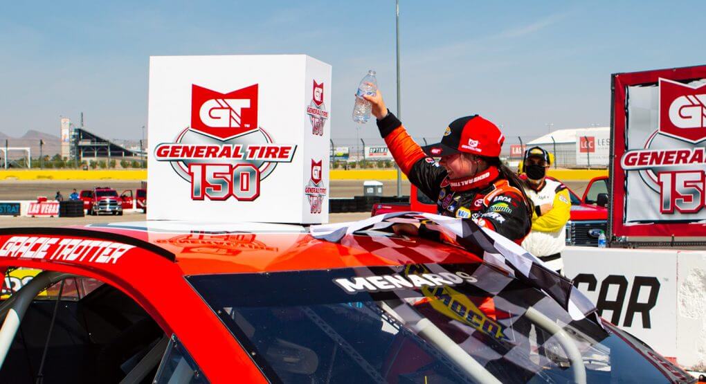The 19-year-old from Denver, Colorado, drove away with the win in the General Tire 150 Saturday at The Bullring at Las Vegas Motor Speedway. In the process, Trotter became the first female winner of an ARCA Racing sanctioned event.
