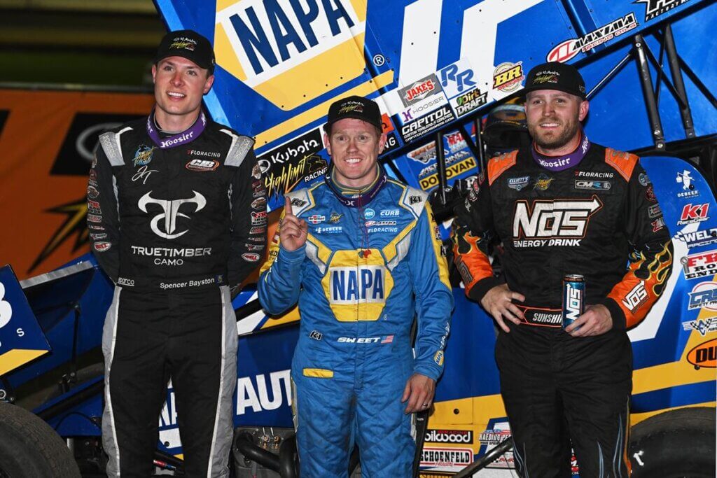 In his 10th start with Kubota High Limit Racing, Brad Sweet finally broke through with the series and won Friday’s stop at Southern Oklahoma Speedway to get his first-career win worth $12,000.