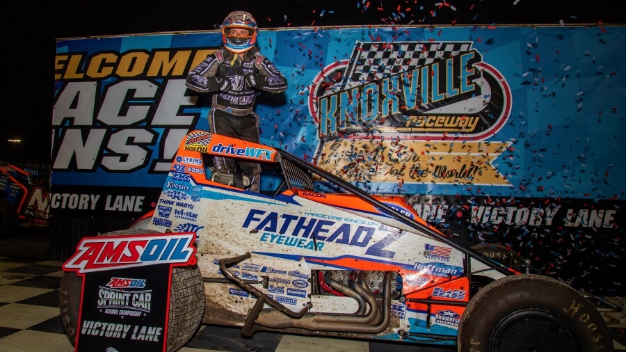 Brady Bacon crossed the start/finish line at Knoxville Raceway during the second annual Corn Belt Nationals in first place, two weeks ago.
