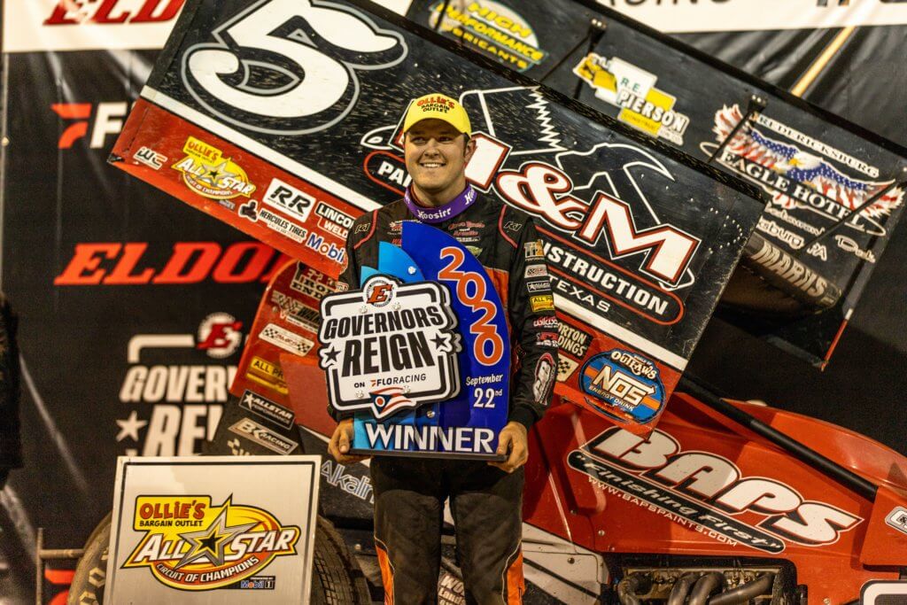 ROSSBURG, Ohio (September 22, 2020) – The first-ever Governors Reign at Eldora Speedway may lack live spectators, but open wheel fans from around the world witnessed history on Tuesday evening at The Big E, as Myerstown, Pennsylvania’s Brent Marks drove his way to Ollie’s Bargain Outlet All Star Circuit of Champions presented by Mobil 1 victory lane to secure the opening night win of the inaugural Governors Reign worth $10,000, broadcast exclusively on FloRacing.
