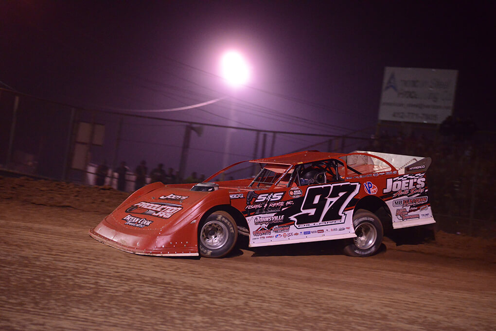 Pulling the lucky one pill, Dillard drew the pole position with Mike Norris of Sarver, Pa. to his outside. Once the green flag dropped, the route was on. While Dillard saw a handful of legitimate challenges from Darrell Lanigan and Max Blair, the control that the MB Customs No. 97 had on the race lead was never seriously questioned.