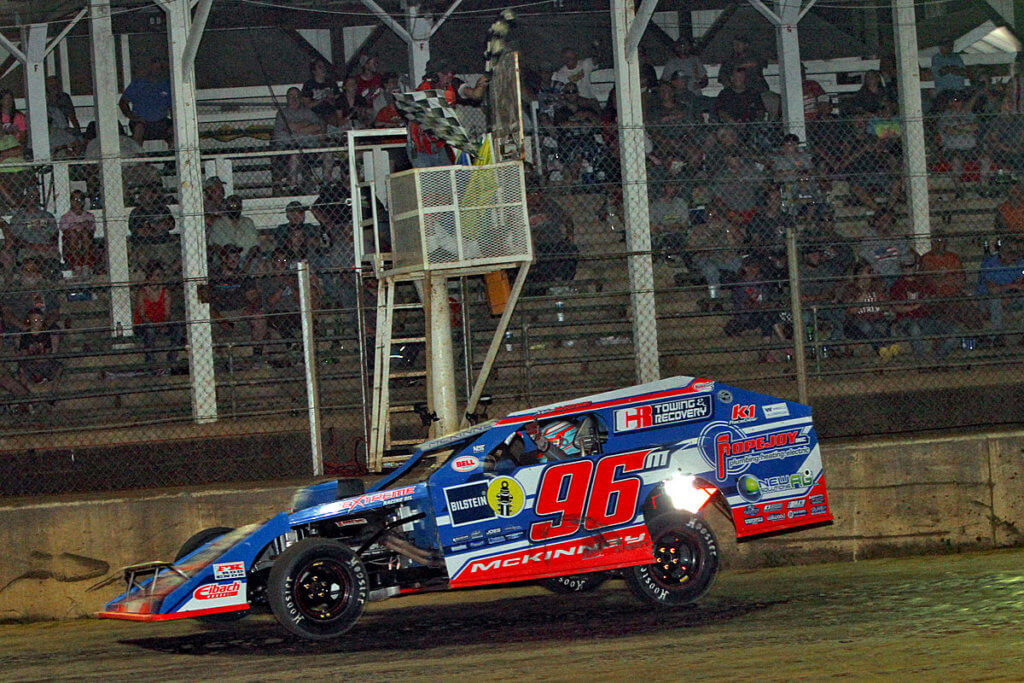 McKinney stuck it on the bottom and pull away, leading every one of the 25 laps in the feature event.