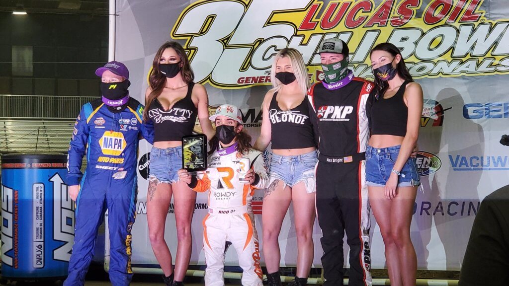 “Just to come here and lock into the show is awesome,” Bright said on the FloRacing broadcast. “This (car) was good tonight. Not good enough to beat Rico. To be able to hold on, keep Sweet behind me… I can just relax the rest of the week now.”